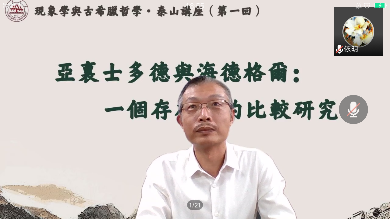 成功举办“现象学与古希腊哲学·泰山讲座”系列之第一回讲座。本次讲座采取网络视频会议形式,由校内外150名左右专家学者和师生在线参与。本次讲座主讲人是中国人民大学聂敏里教授,报告题目是《亚里士多德与海德格尔:一个存在论的比较研究》,讲座由857直播