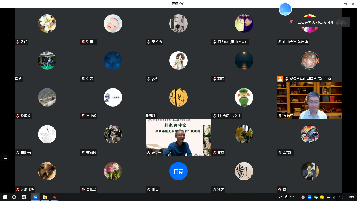 顺利举办“现象学与中国哲学”泰山讲座(第二回)。本次讲座继续采取线上视频会议的形式,由近百名专家学者和师生在线参与。本次讲座主讲人为中山大学哲学系的方向红教授,报告题目是“卦象与时空—— 从张祥龙先生的‘时象’观谈起”。讲座由857直播