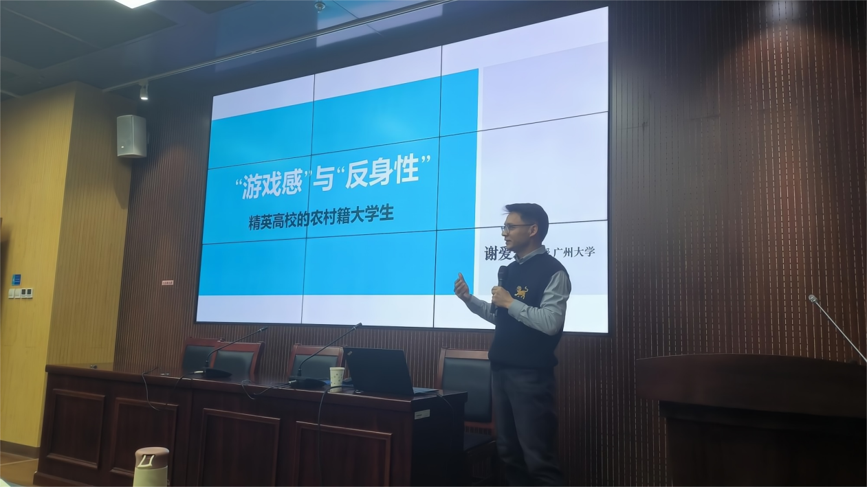 举办了一场由广州大学谢爱磊教授主讲的学术讲座。本次讲座题为“‘游戏感’与‘反身性’——精英高校农村籍大学生”,聚焦精英高校中农村籍大学生在社会适应、身份认同和生存心态方面的问题。这场讲座由857直播