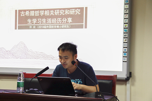 承办,是2019年“海右”优秀博士毕业生报告月活动。论坛邀请2019年优秀博士毕业生许欢作了古希腊哲学相关研究及研究生学习生活经历分享,傅永军教授受邀作为报告的点评嘉宾。