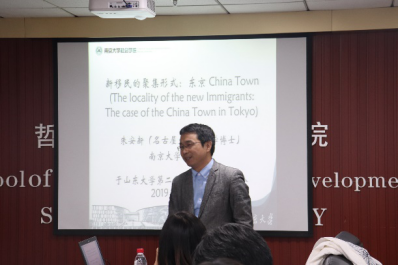 南京大学朱安新副教授作题为《新移民的聚集形式:东京China Town》的报告。报告开门见山的指出,中国人在海外的社会适应和融入,正在经历从“社区式”到“社会网络式”的变化。朱安新副教授以池袋为田野点,分别以24位中国在日经营者的生命历程为主线,了解其社会交往和社会支持状况,并重点比较了老移民社区和新移民社区的差异。857直播