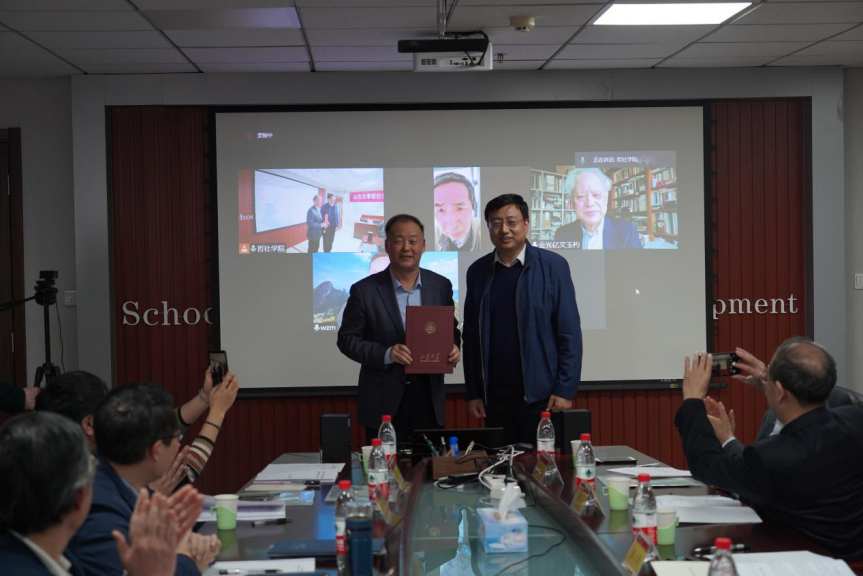 邢占军、刘森林分别代表学校、学院,向在现场参会的委员代表张文新教授颁发了857直播