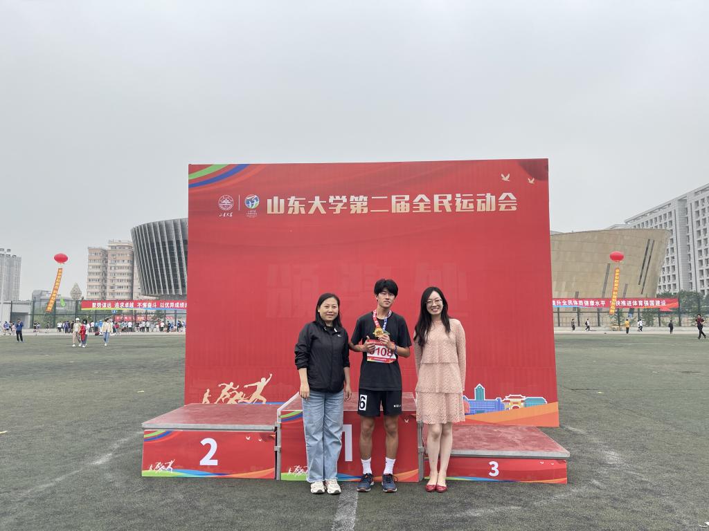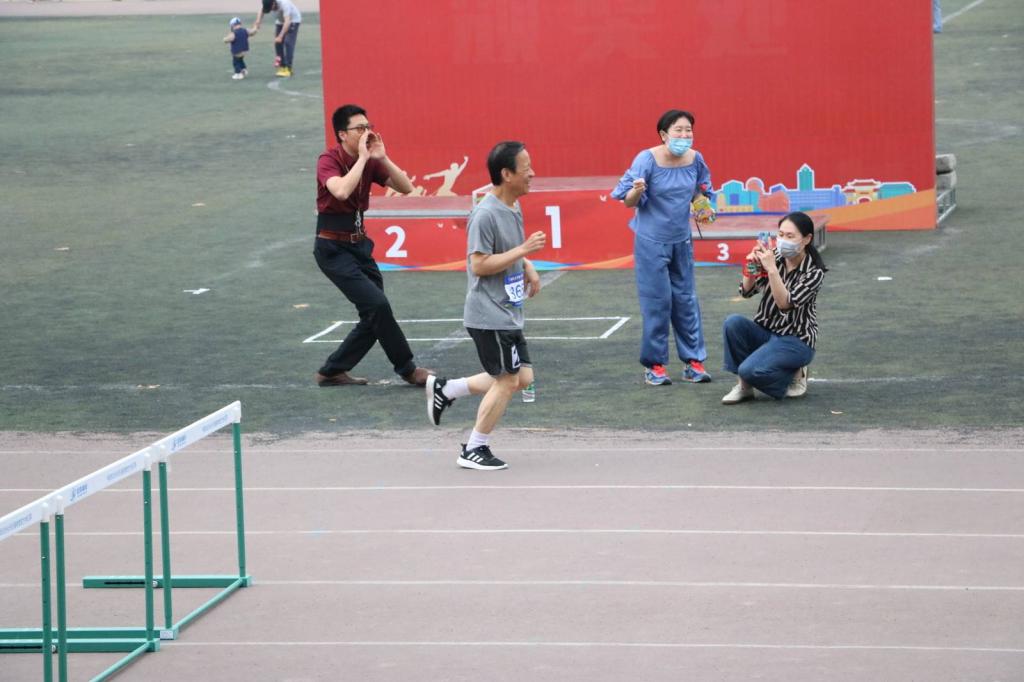 运动会正式开始后,哲社健儿积极参与各项体育赛事并取得优异成绩,孟德誉同学更是在男子1500米项目中勇夺桂冠。不只是青春健儿们,学院老师也积极参加教工项目,65岁的谢文郁老师参加了男子教工1500米(丙组)项目,毛林林老师参加了女子教工800米项目。