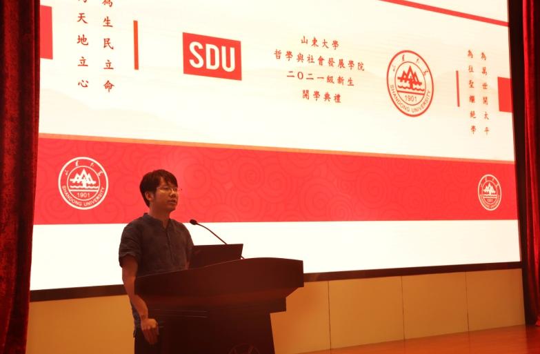 在系主任寄语环节,哲学系主任吴童立副教授、宗教学系主任陈坚教授、社会学系主任林聚任教授、社会工作系主任葛忠明教授、人类学系彭馨妍老师分别从学科内涵、文化解读、视野格局、个人成长、全面发展等多个方面向新生进行了介绍,对同学们表示热烈欢迎并送上美好祝愿。