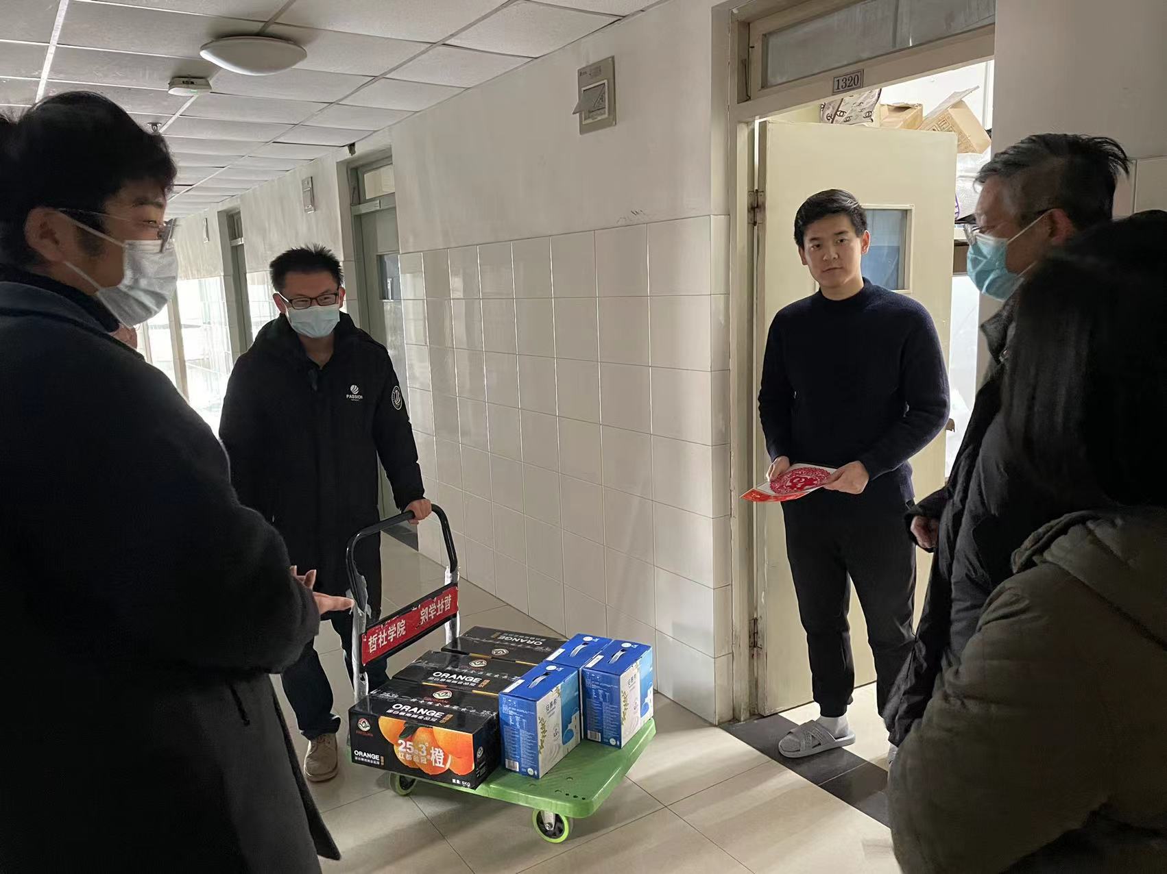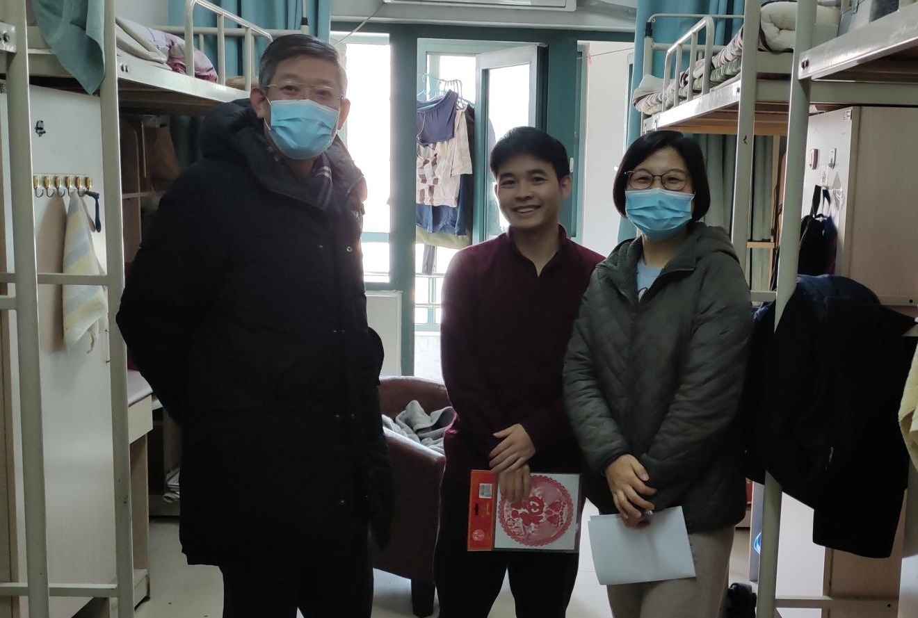 学院领导对春节留校学生的身体和心理状况非常关心,给学生送去了学院精心准备的春节慰问礼包和防疫物品。郑倩关切地询问了同学们的近期状况及假期安排,他表示,因疫情防控、学习科研等原因选择留校,这个春节将成为大家毕生难忘的回忆,他勉励同学们利用好寒假留校的时间,在个人学业上打好坚实基础,为日后取得新突破做好充足准备。