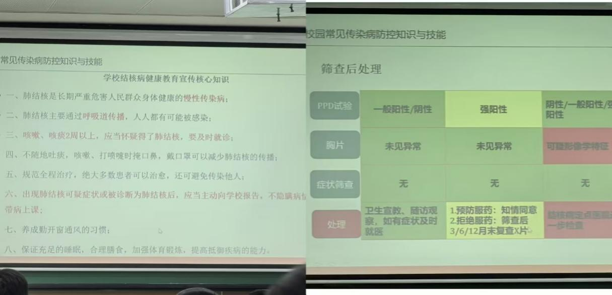讲座伊始,张丽莹结合大学生的实际生活情况与需求,从多个专业角度详细解读了与大学生生活息息相关的健康安全问题,涵盖健康生活方式、营养膳食、校园传染病防控、应急技能以及校园就医与医保政策等多个方面。