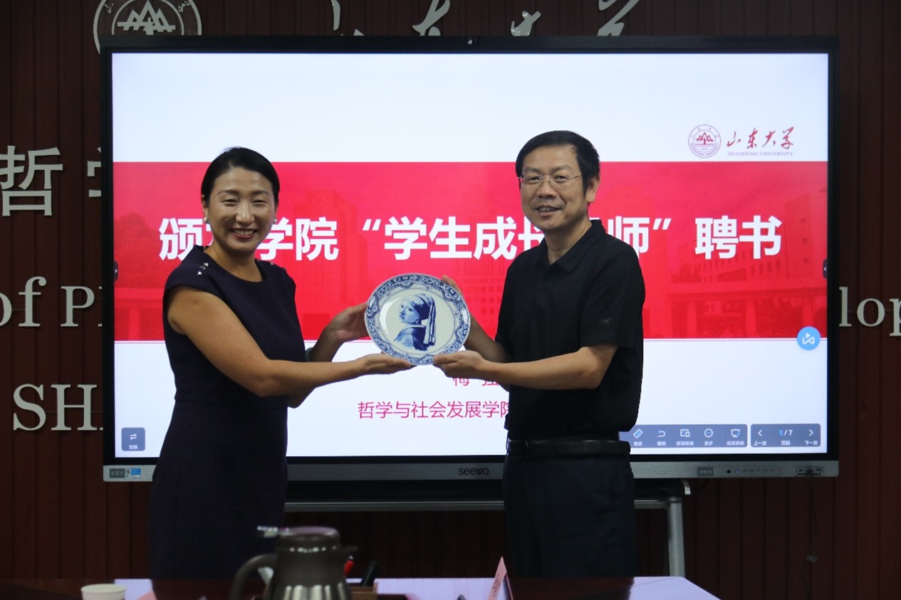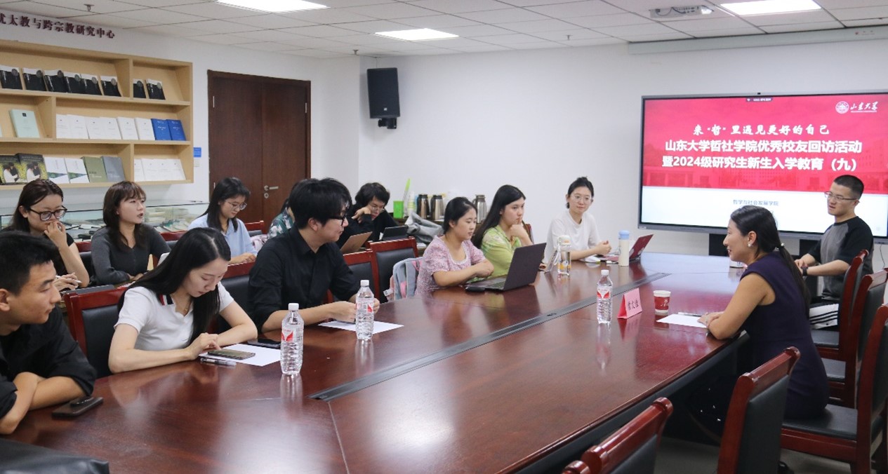 在知新楼A1618会议室举办2024年度首期优秀校友回访座谈会。2000级社会学系优秀校友、荷兰MAX HRM人力资源公司董事长、荷兰山东商会会长常文佳回访母校母院,张海旭、刘文心陪同。学院党委书记梅强、857直播