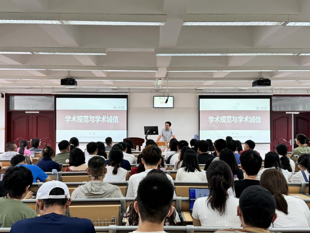 的办学历史和辉煌成就以及学院的历史沿革和发展特色。学院副院长冯波以“学术规范与学术诚信”为题,向新生说明了学术道德和学术规范的重要性。研究生教务员王彤彤新生解读了研究生培养方案的制定要求和注意事项,就研究生管理系统的使用做了详细指导。辅导员吕汶鑫围绕研究生综合评价实施办法和奖助学金评定展开说明,引导新生要坚定理想信念,练就过硬本领,锤炼崇实品格。图书资料室副研究馆员陶莉详细介绍了学院图书资料室的日常管理制度和学术资料的借阅办法。