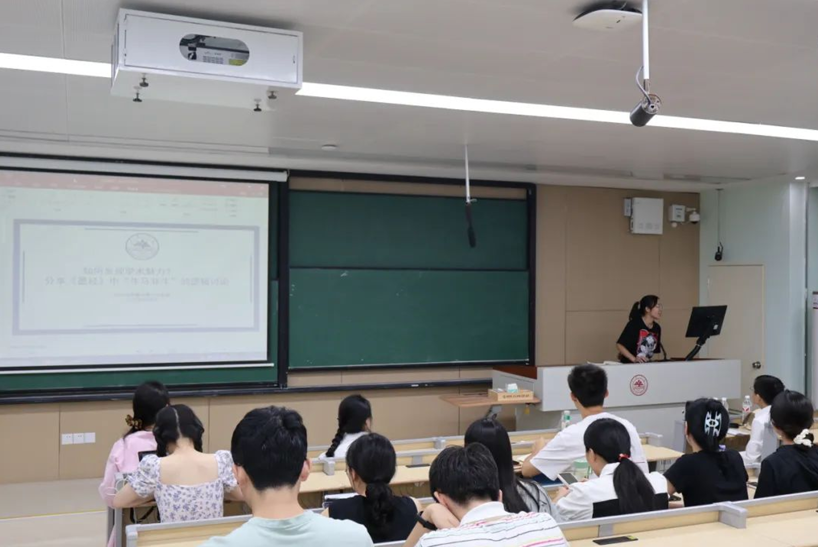 于9月9日在中心校区理综楼213d室组织新生入学教育第八课——优秀学生代表经验分享会,22级博士研究生张鑫做学术经验分享,学院助理研究员孙志强老师作为点评嘉宾出席本次论坛。张鑫就研究方向选择、读研心态管理、学术道德规范与导学管理处理等方面进行了全面的指导和经验分享。此外,她对《墨经》中“牛马非牛”这一命题的近现代学术研究进行了系统的文献回顾和梳理,深入分析与追踪了文本中涉及的两条核心逻辑原理与两条逻辑线索,并就此分享了个人的学术研究经验心得。会上,同学们踊跃发言,交流热烈。孙志强老师结合自己以往的科研工作经验,从选题分类与评价标准、学术论文写作技巧、学术论文编辑的注意事项等多方面做新生指导。