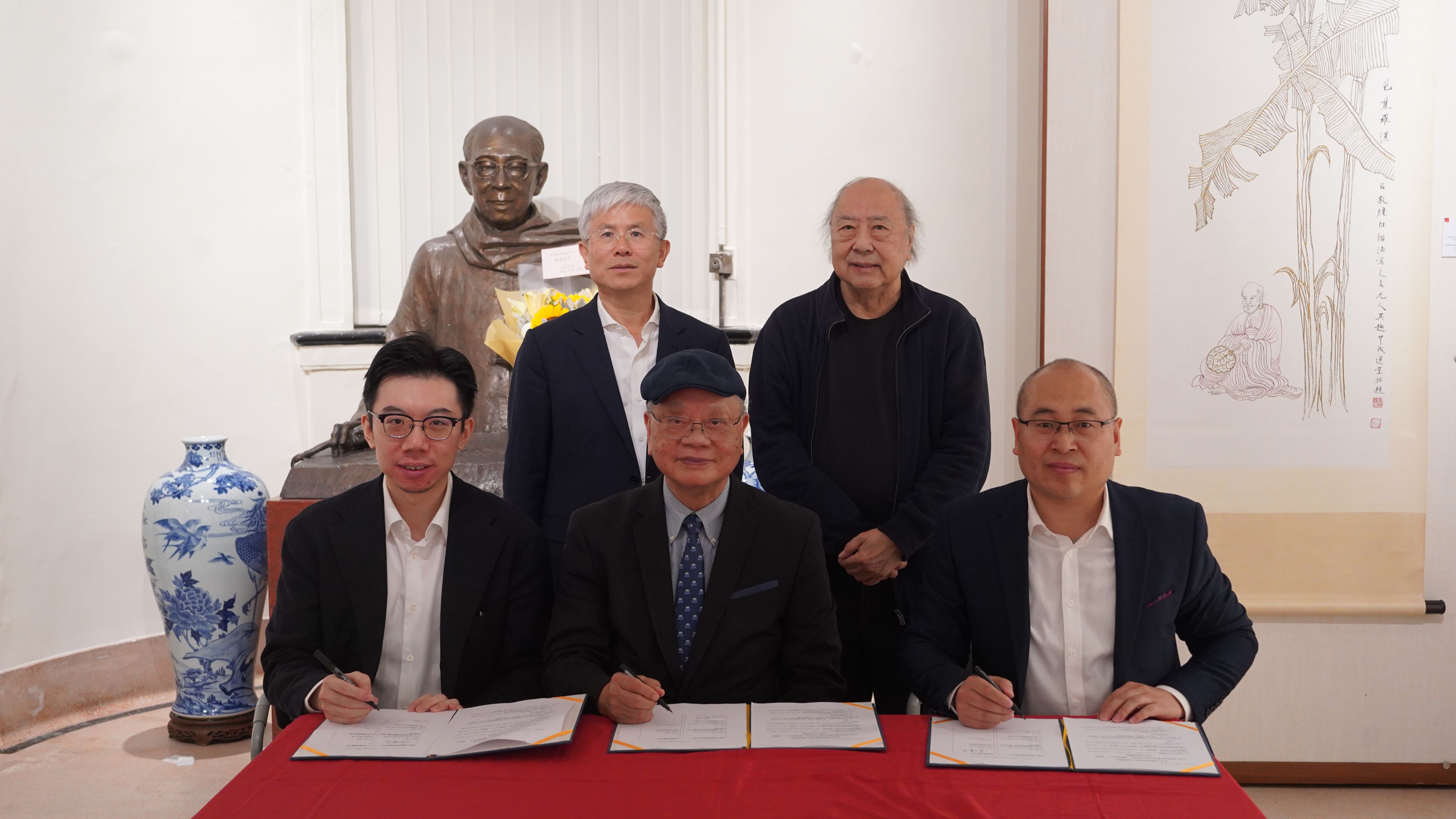 向饶宗颐塑像敬献鲜花,并在嘉宾留言簿上题词“道德文章垂不朽,清风雅量著平生”。李术才向饶宗颐学术馆和饶学联汇赠送《山东省城试办大学堂暂行章程》《周氏师古堂法帖》和近年学校人文社科领域代表性研究成果。李焯芬向李术才赠送饶宗颐先生《眼底山川——饶宗颐教授寰宇艺踪》《海上因缘:饶宗颐艺术天地》书画集。在李术才和邓伟雄见证下,双方签署《香港大学饶宗颐学术馆、饶学联汇与857直播