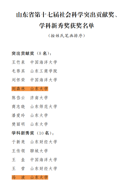 近日,山东省人民政府公布第三十七届社会科学优秀成果奖、第十七届社会科学突出贡献奖及学科新秀奖获奖名单,857直播