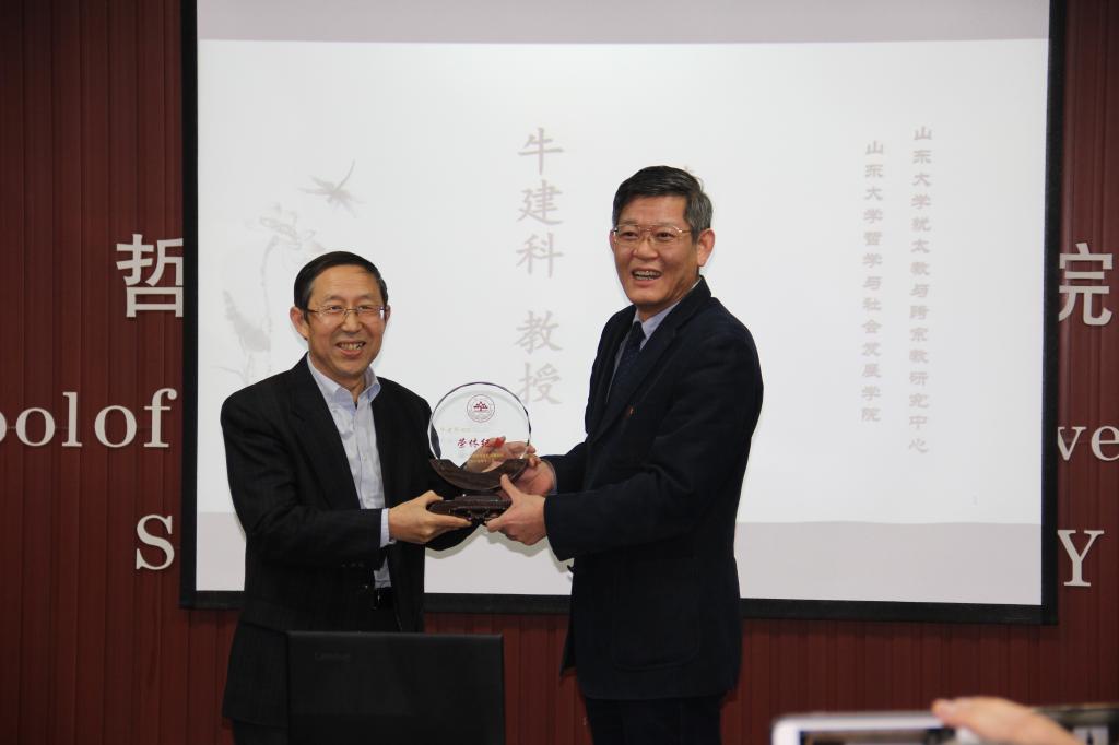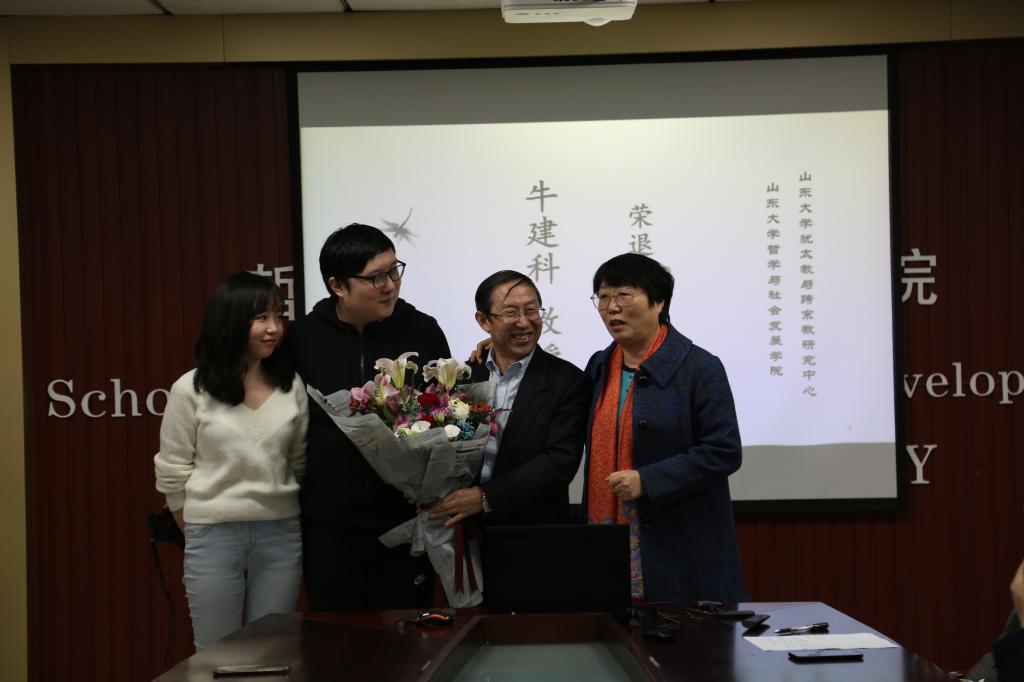 座谈会中,郑倩对牛建科教授多年来为学院学术研究及人才培养所作出的贡献表示衷心的感谢。他表示,牛建科教授在学院多年,一直以敬业的学术精神与积极乐观的生活态度影响着身边的每一位同事及学生,是见证了学院发展,并作出突出贡献的教师。傅有德教授对牛建科教授的荣退表示了衷心的祝愿。荣退是职业工作生涯的结束,但更是一段新生活的开始,在这段期间可以有更多的时间享受生活。傅有德教授回顾了与牛建科教授共同学习、共同研究以及共同工作的经历,并对牛建科教授在学术上的成就进行了简单总结。无论是学术工作,还是犹太教与跨宗教研究中心的管理工作,牛建科教授都能够有条不紊、踏踏实实地完成。同时,他代表多年来与其共事的各位同事,祝愿牛建科教授能够保持乐观积极的心态,快乐享受退休生活。刘岳兵教授代表同行学者发言。他表示,二人作为同领域的研究学者,牛建科教授一直在学术方面对他提供了很多的建议与帮助,是学术界公认的具备良好学术素养与研究能力的优秀学者。未来,还希望牛建科教授在享受退休生活的同时,能继续为宗教学研究提供指导。随后,与会的学院同事、同行学者及学生代表一一发言,分享了与牛建科教授共事的经历与感悟,并送上了真挚的祝福。