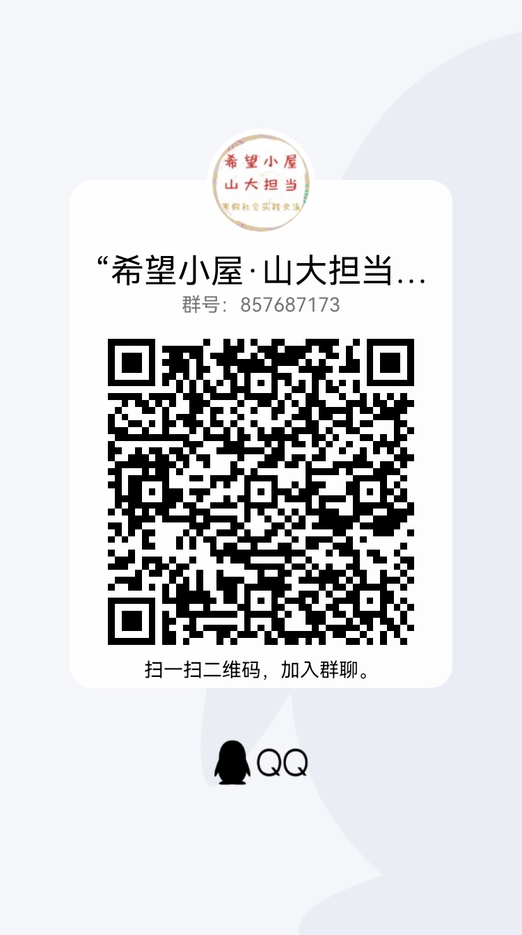 “希望小屋”专项面向济南、青岛校区本研学生,借力857直播 硕博服务团服务地方优势,发挥青年志愿者联合会、各学院志愿服务组织力量,根据当地情况开展“希望小屋”助力帮扶等活动。学院将根据团队报名情况择优报送一支队伍。请有意向参与该专项的团队队长加入下方的QQ群,后续推优答辩事宜将在群内通知。