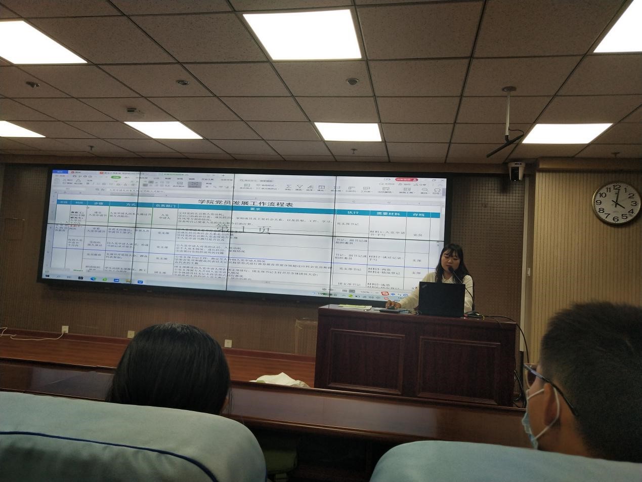 随后,班梦姣详细讲解了本科生入党的流程以及重要时间点。本科生递交的纸质申请书需要包括以下几个方面:1.对党的认识和入党动机;2.自己的政治信念、成长经历、家庭成员及主要社会关系,以及思想、工作、学习、作风等方面的情况;3.表明自己申请入党的决心和今后的打算。在递交申请书后,审查人需要在申请书上签字,随后,党组织派人同入党申请人谈话,形成书面记录并签名。之后,一般由群团组织推优,确定入党积极分子,然后便是入党积极分子的培养教育;在确定发展对象后,对发展对象进行考察,最终确定预备党员的接收、教育、考察和确定。