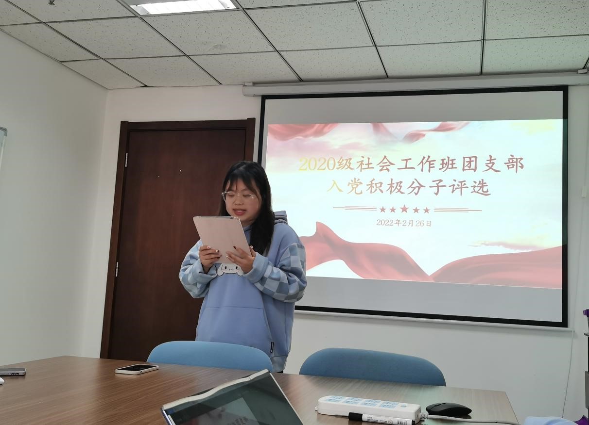 紧接着,团支部开展群团组织推优工作,民主评议推荐入党积极分子。推优工作采取个人演讲与民主评议相结合的方式,同学们热情高涨,积极向党组织靠拢,期待为党组织贡献自己从青春力量。