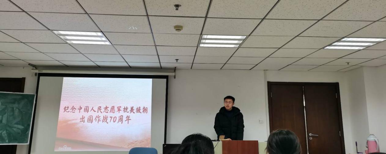 活动之初,代煜昊同学为大家讲述了抗美援朝的历史,生动再现了当年我国面临的艰难形势,突出了中国人民维护和平的信心和责任感,同学们对中国人民志愿军的崇敬之情油然而生。