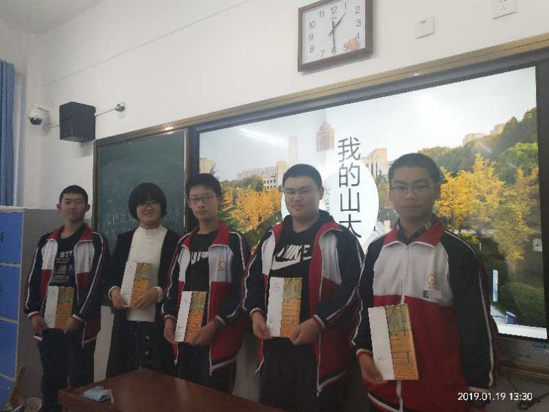 的历史背景,人才培养计划,招生情况以及校园环境等方面进行了详细的介绍。其中,宿舍条件和食堂以及山大的“网红猫”最引得同学们的兴趣,现场的气氛一时间变得活跃起来。接下来由王一哲同学进行了高中时期的学习经验交流。王一哲同学就高中时的学习经历以及感悟,向同学们介绍了各个学科在学习过程中的方法技巧,并就一些同学们在学习中的困惑进行了解答,同学们都做了笔记,可见受益匪浅。在随后的回答问题环节,我们不仅耐心回答了关于报考山大、介绍山大政策等相关问题,同时还发放了山大明信片、宣传册和书签等纪念品,和同学们度过了愉快的时光。