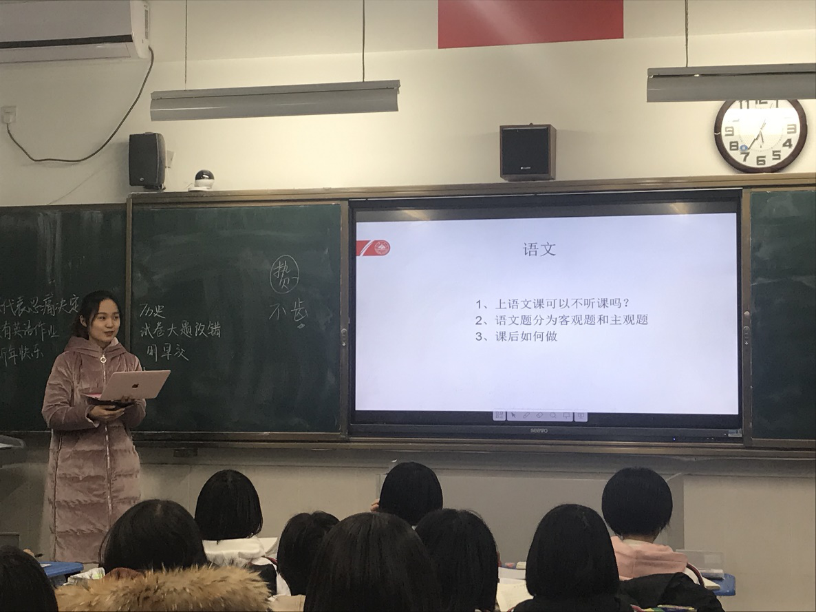 在事先与各班主任沟通交流之后,陈曦和她的高中同学于1月20号晚上来到学校开展了各自的宣讲工作。为了有效地实现与857直播
